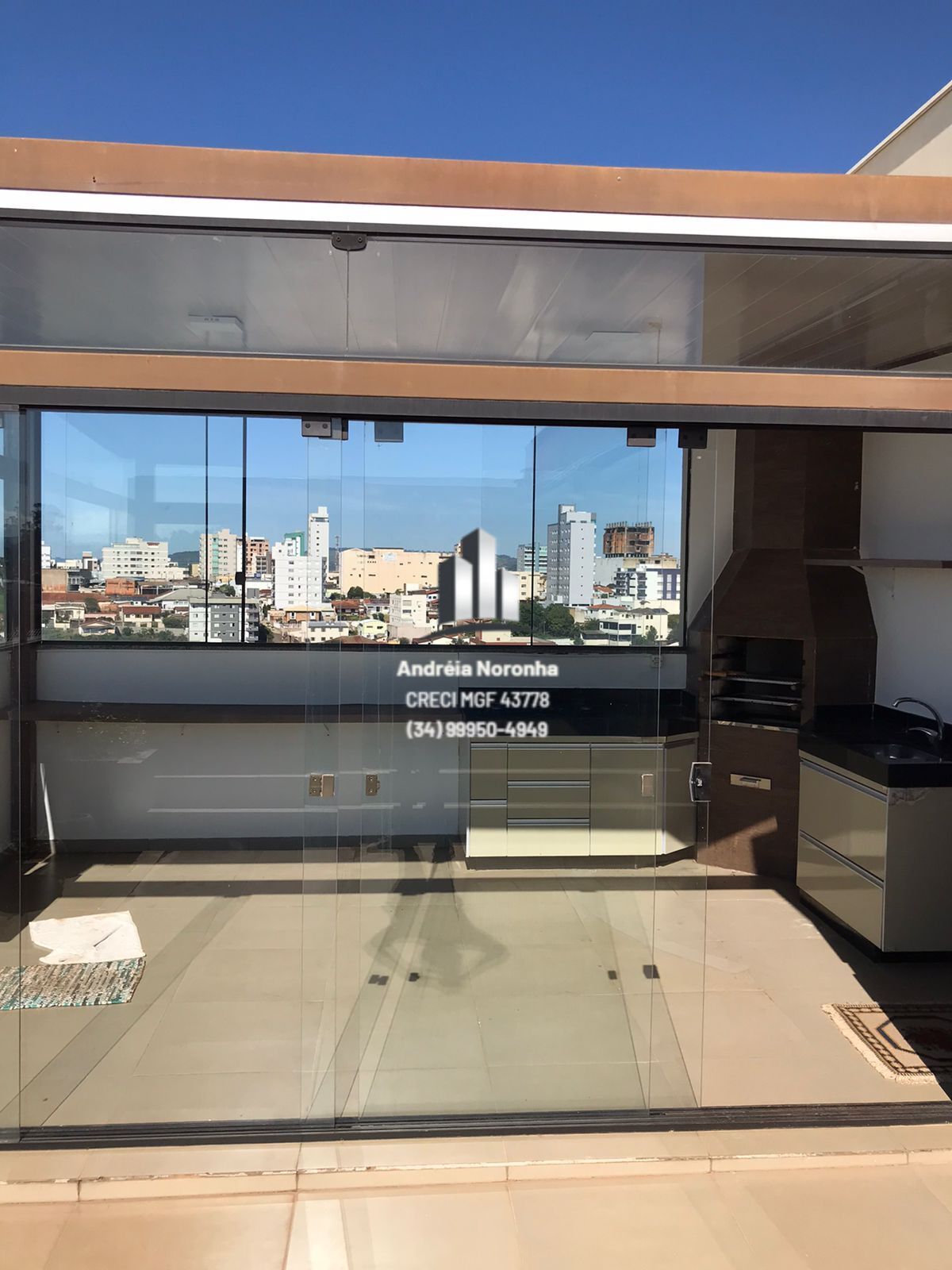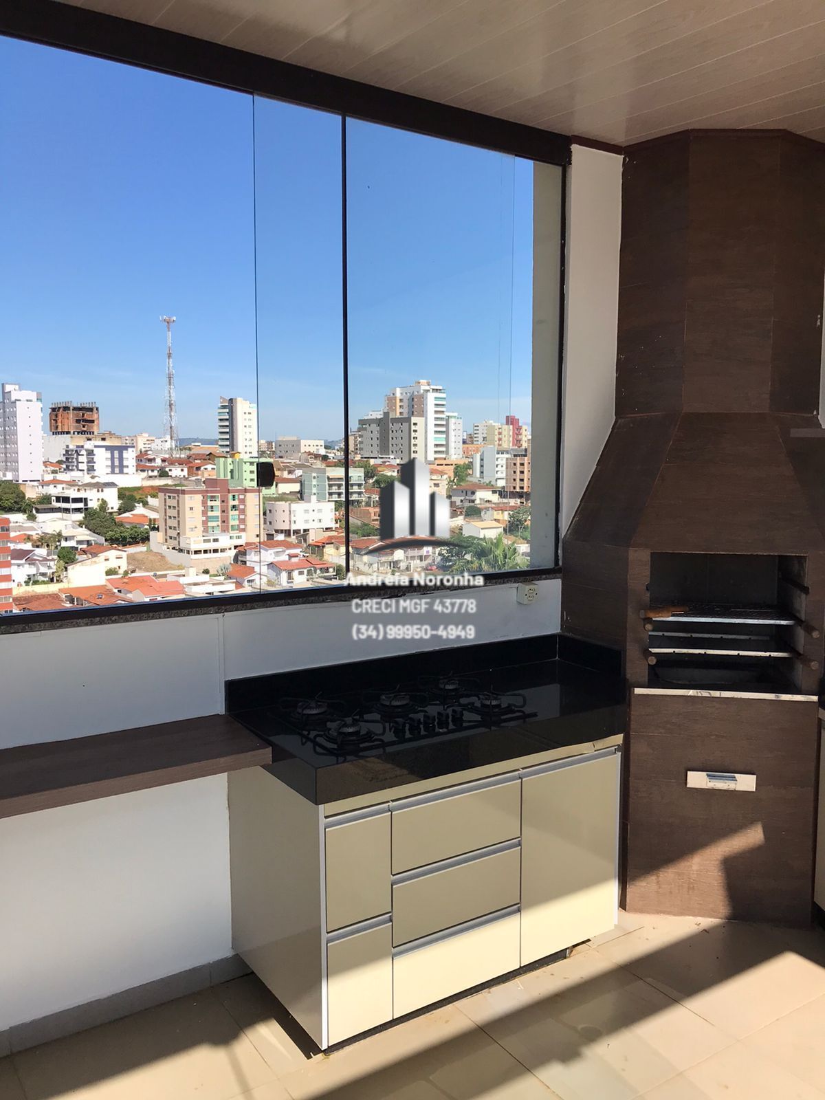 - Área gourmet com churrasqueira e piscina, vista panorâmica da cidade