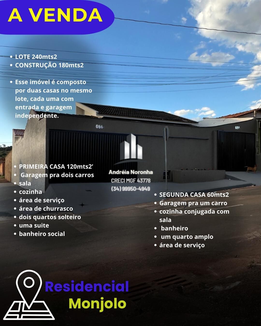 R$350.000,00 / VENDA🏚️ IMÓVEL COM 2 CASAS NO MESMO LOTE COM ENTRADA INDEPENDENTE - RESIDENCIAL MONJOLO 🏚️