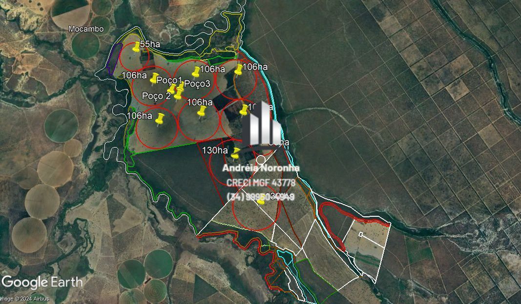 270 há irrigados com 03 (três), pivô central.